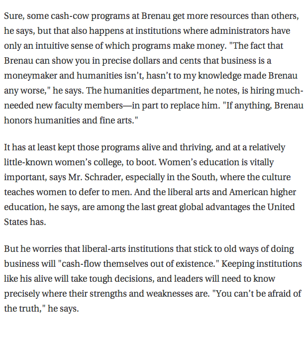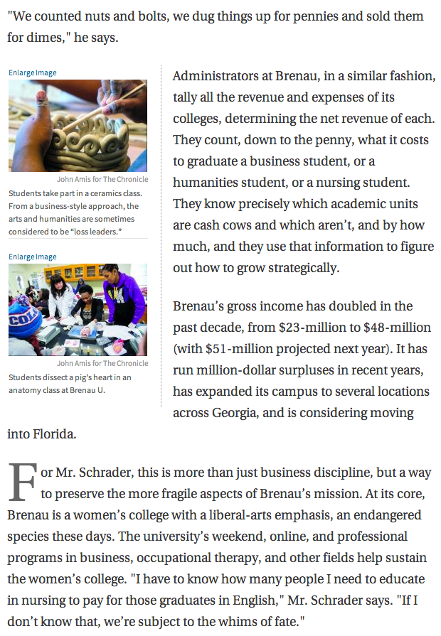 Well, This Might Provoke Some Conversations… February 3, 2014 Dan Ryan ICYMI Leave a comment From CoHE… Accounting for Success: Brenau U., a women’s college in Georgia, is running million-dollar surpluses. Here’s how https://dl.dropboxusercontent.com/u/13897743/Brenau.pdf <!– –> Share this: Click to share on X (Opens in new window) X Click to share on Facebook (Opens in new window) Facebook Like Loading... Related