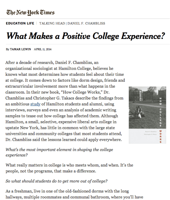 - John Warner. “How College Works.” Inside Higher Ed February 3, 2014 – 8