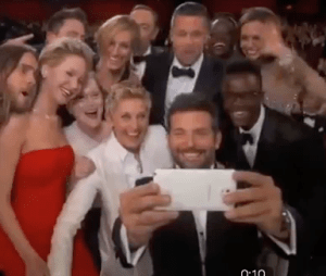 Now, shows like Scandal and Girls and especially contest shows like The Voice or America’s Got Talent actually make an effort to get people to tweet about them and athletes have often tweeted before or even during a competition, but deGeneres’s gambit was slightly different. She showed us the tweet (or at least informed us of it) and gave us a photo that we saw being composed and taken (indeed, we can find a picture of the picture being made as we see below).