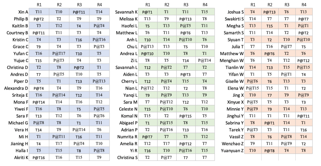 - If you will not be in class but wish to participate remotely find your pitch and catch assignments below.